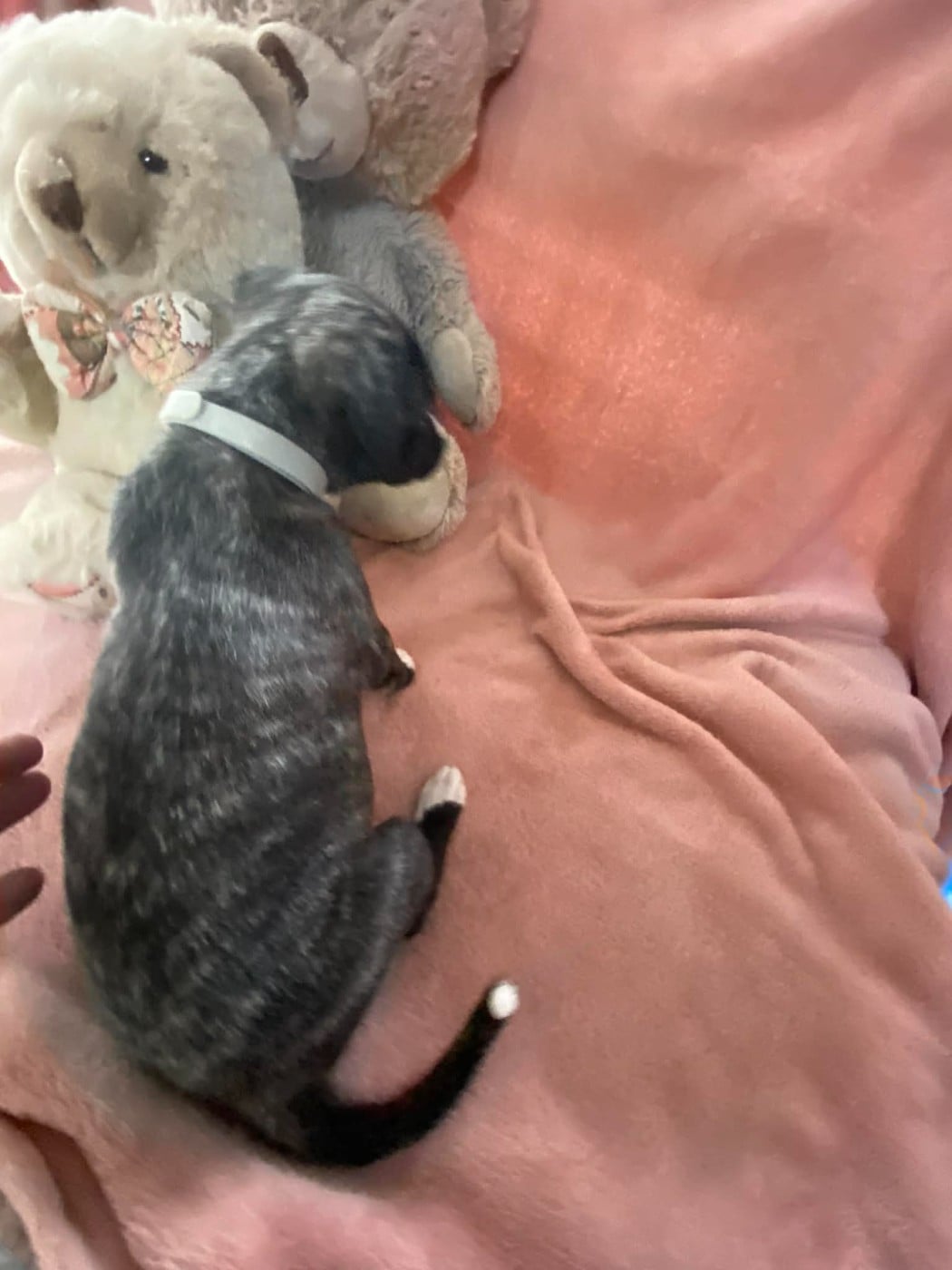 C'est la puce de la portée mais quelle battante !!!! Poids de naissance : 130 g Poids 1 jour : 140 g Poids 2 jours: : 160 g Poids 3 jours : 180 g Poids 4 jours : 200 g Poids 5 jours : 240 g Poids 10 jours : 430 g Poids 15 jours :580 g
